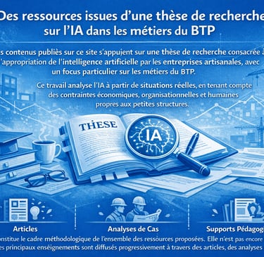 Les contenus publiés sur ce site s’appuient sur une thèse de recherche consacrée à l’appropriation de l’intelligence artificielle par les entreprises artisanales, avec un focus particulier sur les métiers du BTP.