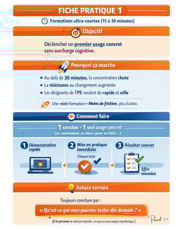 Ces fiches sont pensées pour coller au réel des petites structures : peu de temps, peu de ressources, beaucoup de pragmatisme.